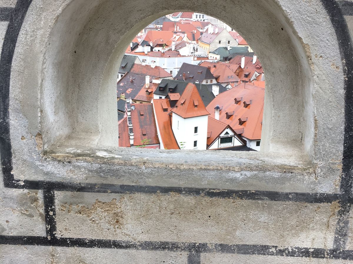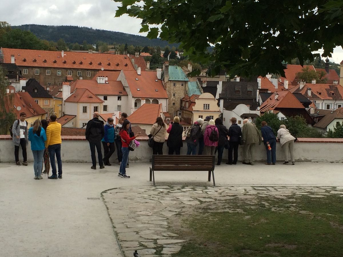 目的地はチェスキー・クルムロフという街1箇所のみ、プラハから片道2時間半ぐらいの旅です。まずお城の内部を英語ツアーに参加して見学、日本語の資料を事前に渡しておいてもらったので、それを読みながら進みました。また、ガイドさんの英語と英語の説明の合間に日本語ガイドさんが補足説明をしてくれましたので、とてもよくわかりました。その後景色の良いポイントで記念撮影しながら、旧市街へと降りて行きました。旧市街では、昼食とお土産探しの時間。使う時間と街の規模が丁度合っていて、見逃して心残りということもなく、かといって暇すぎず、ピッタリに自由時間を使えました。
