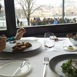 プラハ滞在二日目にお世話になりました。ガイドのウカイさんは上品な方でとても親身にプラハについて相談にのってもらいました。プラハ城やストラホフ修道院ももちろん重厚で素敵で感動しましたが、レストランのフレンチのメインに母は牛肉、私はブラック・ドラムを選びましたがどちらも美味しかった。テーブルもカレル橋が調度見える場所でした。ただ、デザートは残念ながら美味しくなく、しかも量が多すぎて残してしまいました。