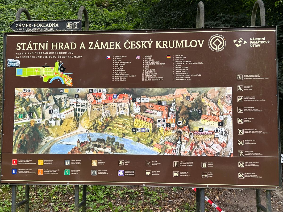 お城への道は傾斜があるので歩きやすい靴で。旅程でチェコに戻らない方はチェココルナの現金はチェスキークルムロフで使い切った方が良いと思います(ドライバーさんへのチップ分は残して)