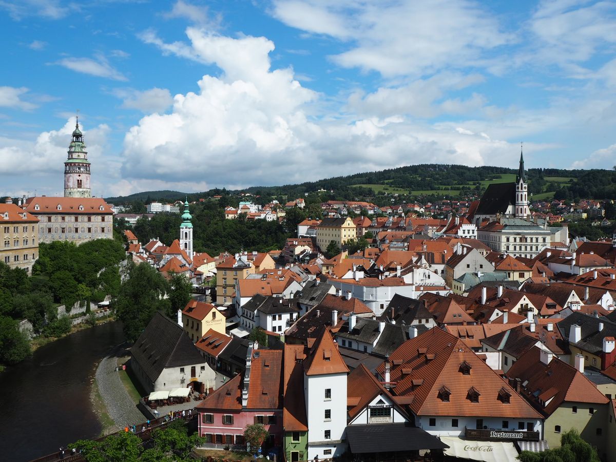 メインのチェスキークルムロフは、天候にも恵まれ絶景を十分楽しめました。アジア系の団体ツアーが多く、お城の塔は狭い急な階段を登り降りするので渋滞して時間がかかりました。塔の上まで行かなくても、お城の中庭から街の美しい景色は味わえると思います。