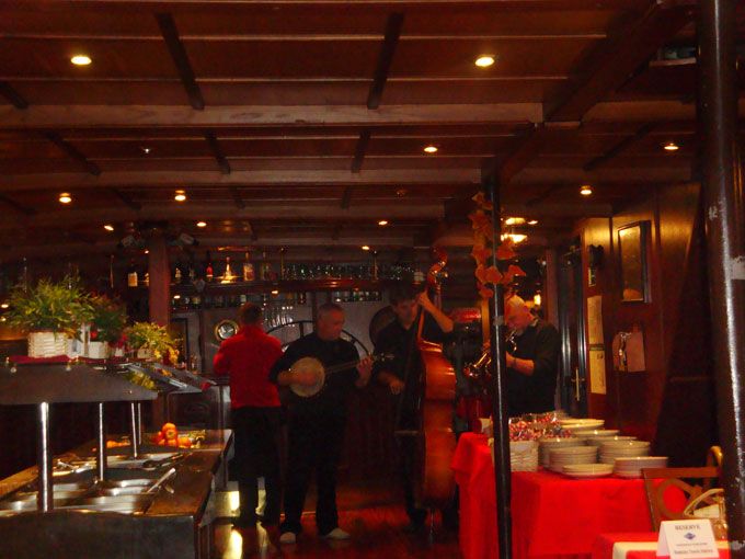 船は大変雰囲気がよく僕たちのグループはとても楽しむことができました。生演奏を真近でしてくれて、とても癒されました。船の大きさはあまり大きくありませんが少人数でのディナークルーズのほうが個人的には好きなので僕たちは満足できました。ただ席は少し狭いかなと感じました。