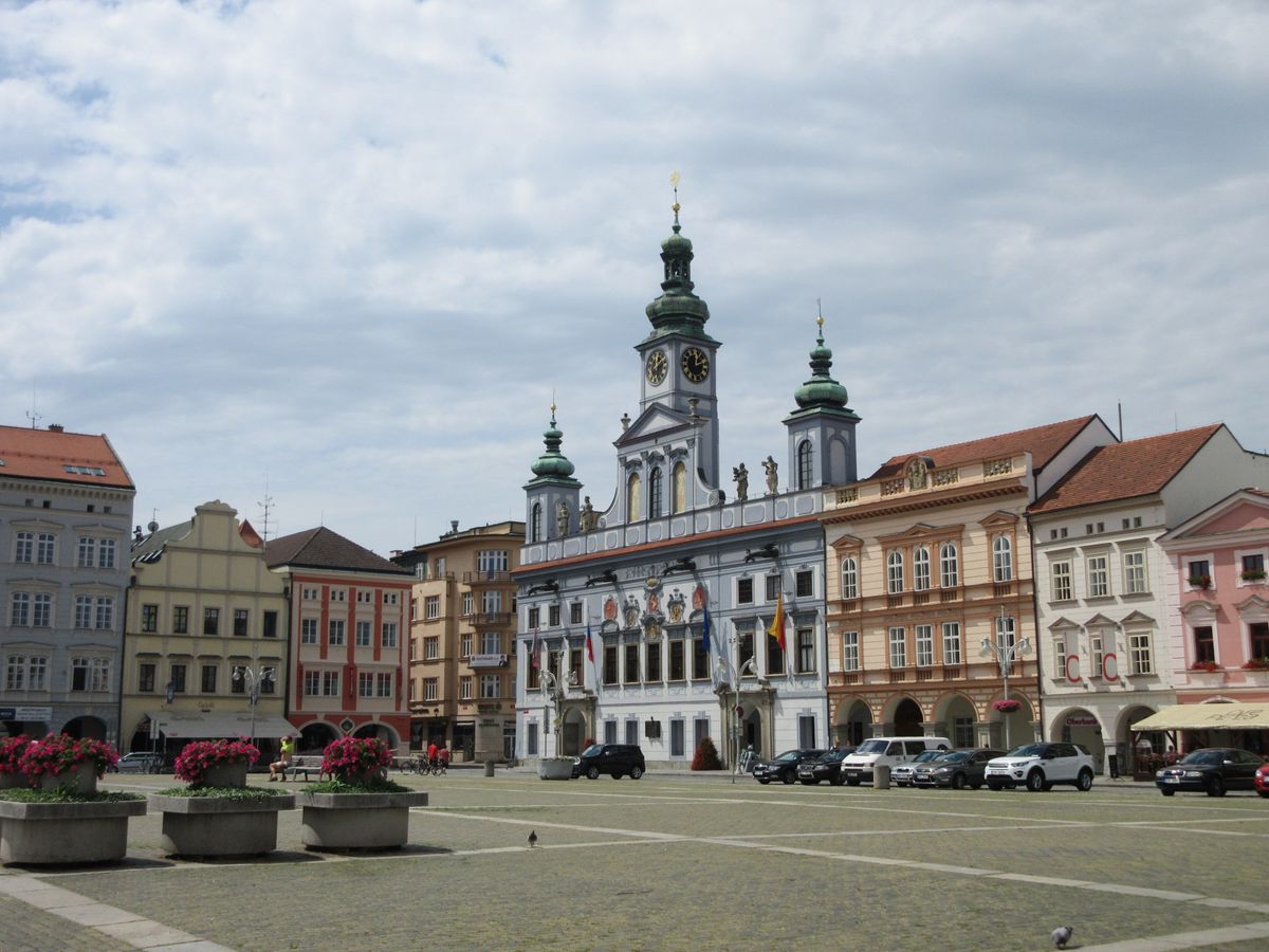 昼食はガイドさんといっしょに、チェスケー・ブジェヨビツェにあるサムソンの噴水の近くのRestaurace Masné krámyでスープ、サラダ、2つの肉料理と魚料理をいただきました。どれも大量です。食べきれません。噴水のある広場に市役所があるのですが、街の中に溶け込んでいて他の商店と区別がつきません。日本の市役所と全く違う雰囲気でした。ガイドさんと町回りをして、犬はリードなしで自由に歩いていました。犬がとても大切にされているようです。