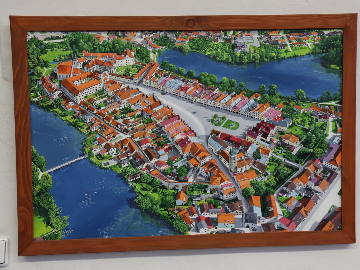 2日目は、ガイドさんとクルムロフの修道院をめぐり、街をゆっくり散歩。エゴンシーレの美術館がある。エゴンシーレのおばあさんの家がある。その後クルムロフ城を見学。ここもチェコ語のガイドさんとSさんと日本語パンフレットを見ながらいっしょに1時間ほど見学。昼食はソーセージのピクルス、カマンベールチーズのオイル漬け、どちらもチェコ料理、ビールのおつまみのようなもの、ゆっくりいただき、クルムロフを離れ、テルチへ