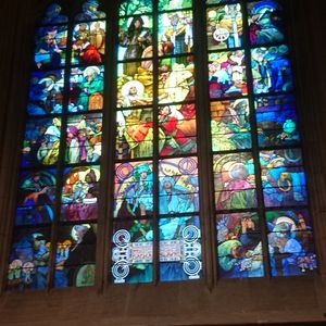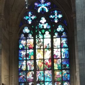 集合場所でトラムのチケットをいただき、トラムに乗ってプラハ城近くまで行く。トラムを降りて開門前の聖ヴィート大聖堂入口先頭に並ぶ。(入場料とカメラ撮影料は現金で支払が必要。ガイドの方が買いに行ってくれた)まだ混雑前なのでプラハ城の隅々を丁寧に説明していただきました。ミュシャのステンドグラスは今までに見たことのない美しさでした。プラハ城からは徒歩でカレル橋を通って旧市街ヘ行き、散策。混雑を避け、裏道を通る楽しさも教えていただきました。パンを家で焼いている妻の希望もあり、小麦粉の買い物にも付き合っていただきました。翌日、トラムに乗ろうとしましたが、チケットの買い方を聞いて無かったので(クレジットカード、紙幣は不可?)トラムに乗れず歩きまわりました。