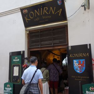1軒目は、徒歩で旧市街の路地にある元馬小屋「KONIRNA」へ。個人ではまず入らないホスポダです。時間が早かったせいか、おつまみは4種類程度しかありませんでしたが、ガイドさんの説明で、良いチョイスができました。