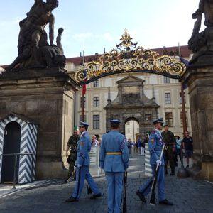 バスで旧市街広場を通ってプラハ城の入り口に。セキュリティチェックを通過して、ちょうど12時の守衛さんの交代を見ることが出来た。
