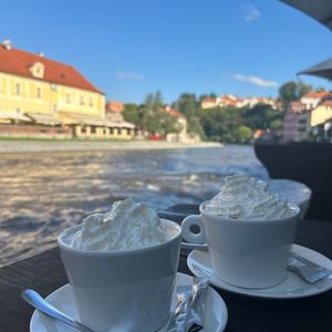 城外と中心街、写真スポットを案内してくれました。城内のツアーはガイドなしで他の観光客と一緒に周りました(英語ツアー)。お昼はツアー代に含まれていたため、ガイドと一緒に食べました。ソフトドリンク1杯は無料で頼めます。自由時間中は川沿いのカフェでゆったりとした時間を過ごし、街並みを堪能しました。