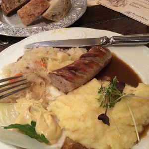 予定では、12時過ぎにドレスデンのレストラン到着、13時ランチのスケジュールでしたが、11時半過ぎにはドレスデンに到着し、とても速いランチを取らざるをえませんでした、また、ランチメニュー2通りから選択とのことでしたが、スープ&マッシュポテト付のソーセージのみ。