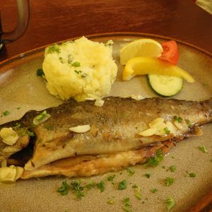 チェスキー・クロムロフでは最初天気が今一つでしたが、後半はくっきりと晴れて、美しい街並みを堪能しました。ランチのマス料理も、川魚好きとしては美味しくいただきました。