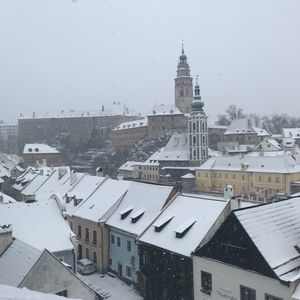 チェスキークルムロフは雪が降っていて可愛い街並みがロマンチックな雰囲気になってました。