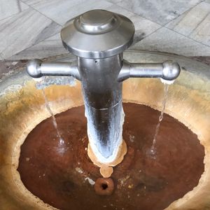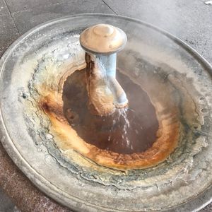 温泉を飲むための容器を購入し、15カ所の蛇口の温泉を試飲しました。