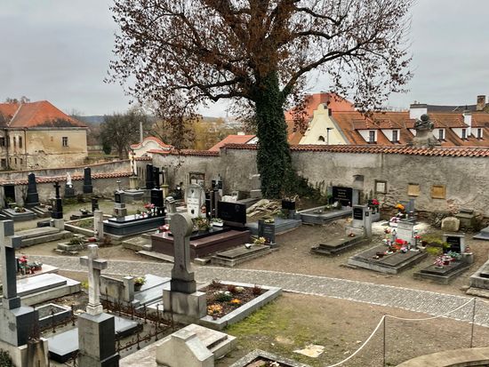 プラハからの小旅行。天気が悪く寒かったのですが快適でした。墓地教会はなんとも言えない不思議な空間でしたが怖さはなかったです。35分の自由時間は周辺の散策情報を教えて欲しかった。