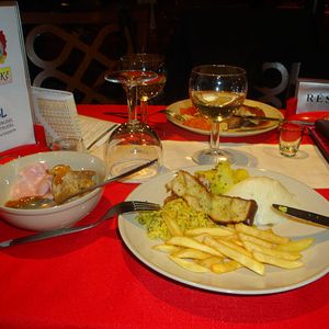レバノンのご夫妻とボトルワイン一本を注文、それを飲み、(一人グラス2杯ぐらいでした)また終わりにはコーヒーを注文、折半で我々は二人で17ユーロほど払いました。