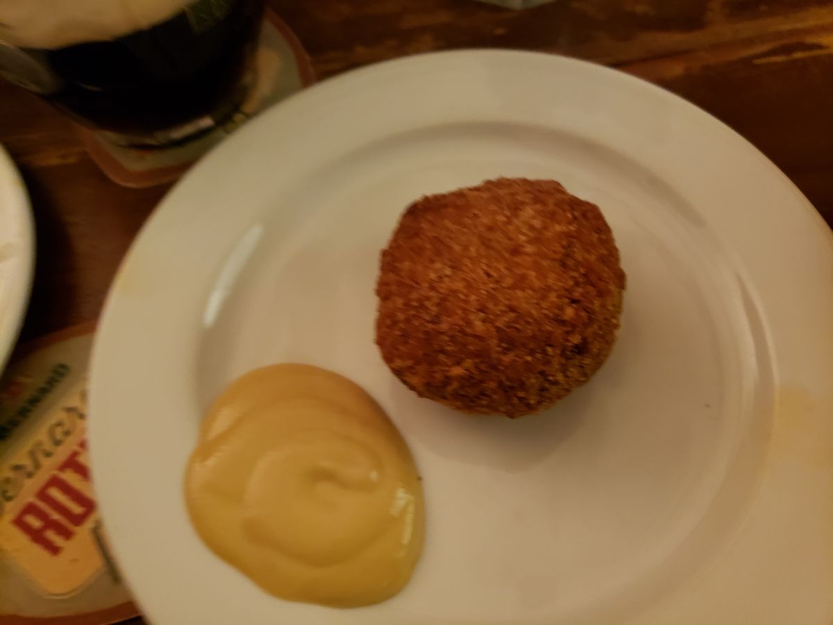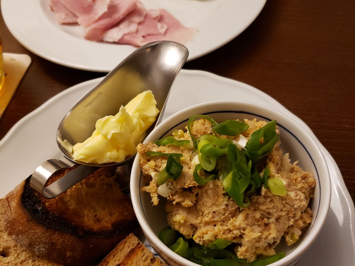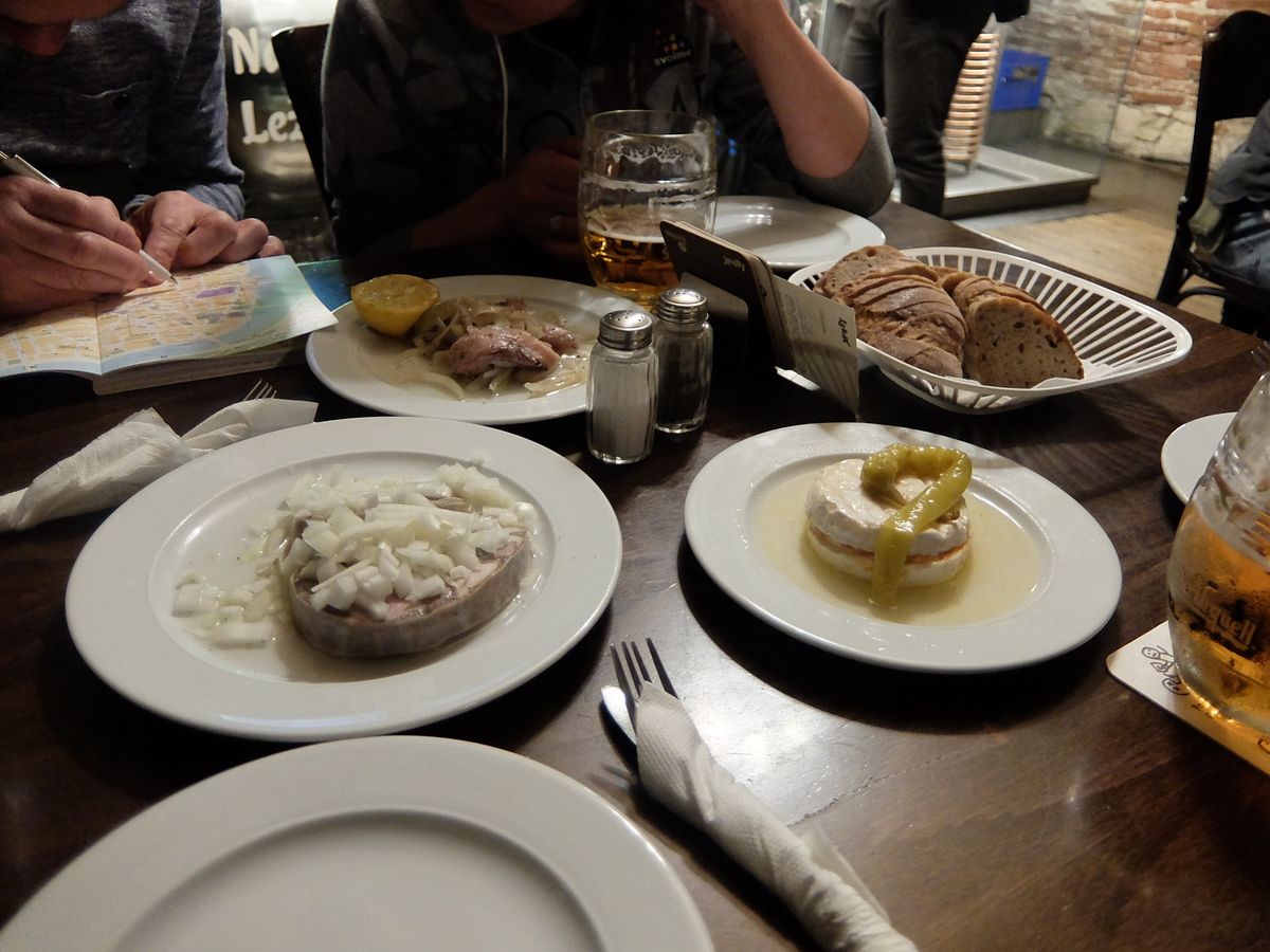 今回は参加者が自分たちだけで、プライベートなツアーになりました。1軒目のお店は地元で人気のビアホールでした。そこで飲んだブドヴァルというビールは苦くなくて美味しかったです。鯉のフライという珍料理も食べることができて貴重な体験になりました。笑