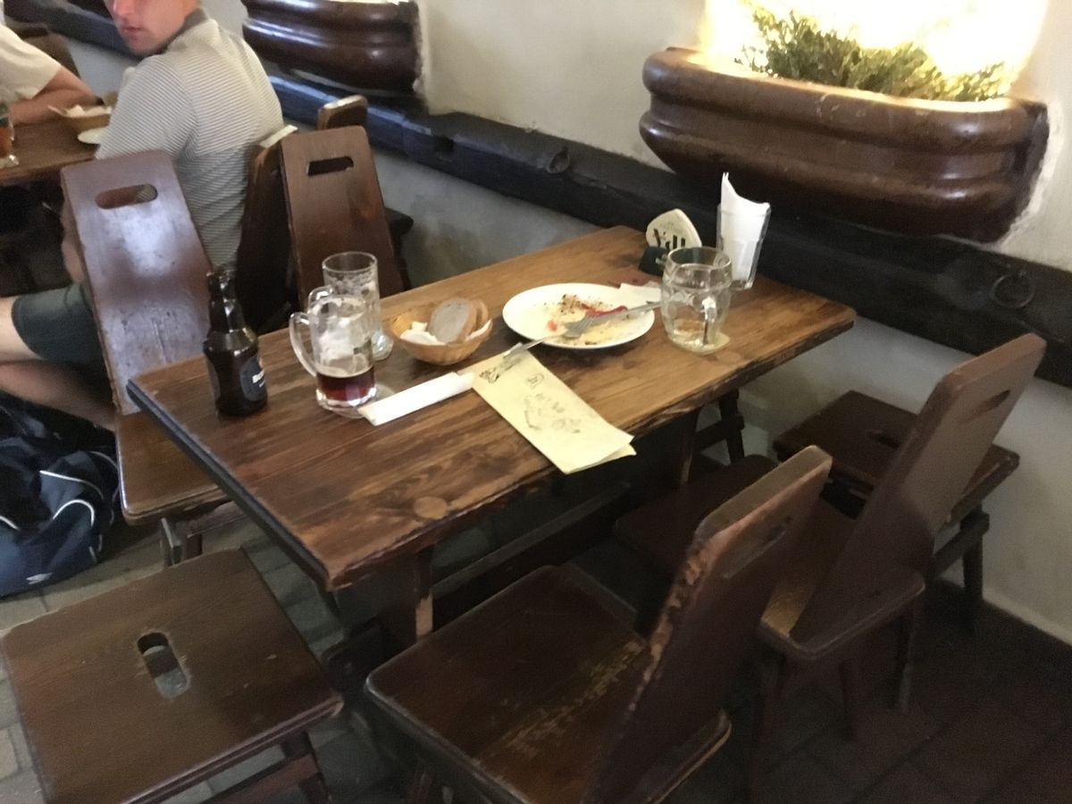 ビールとおつまみは私たちにはちょうどいい量でしたが、男性にはどうでしょうか。プラハではビールが安価ですので自腹でのおかわりもお財布にやさしいです。