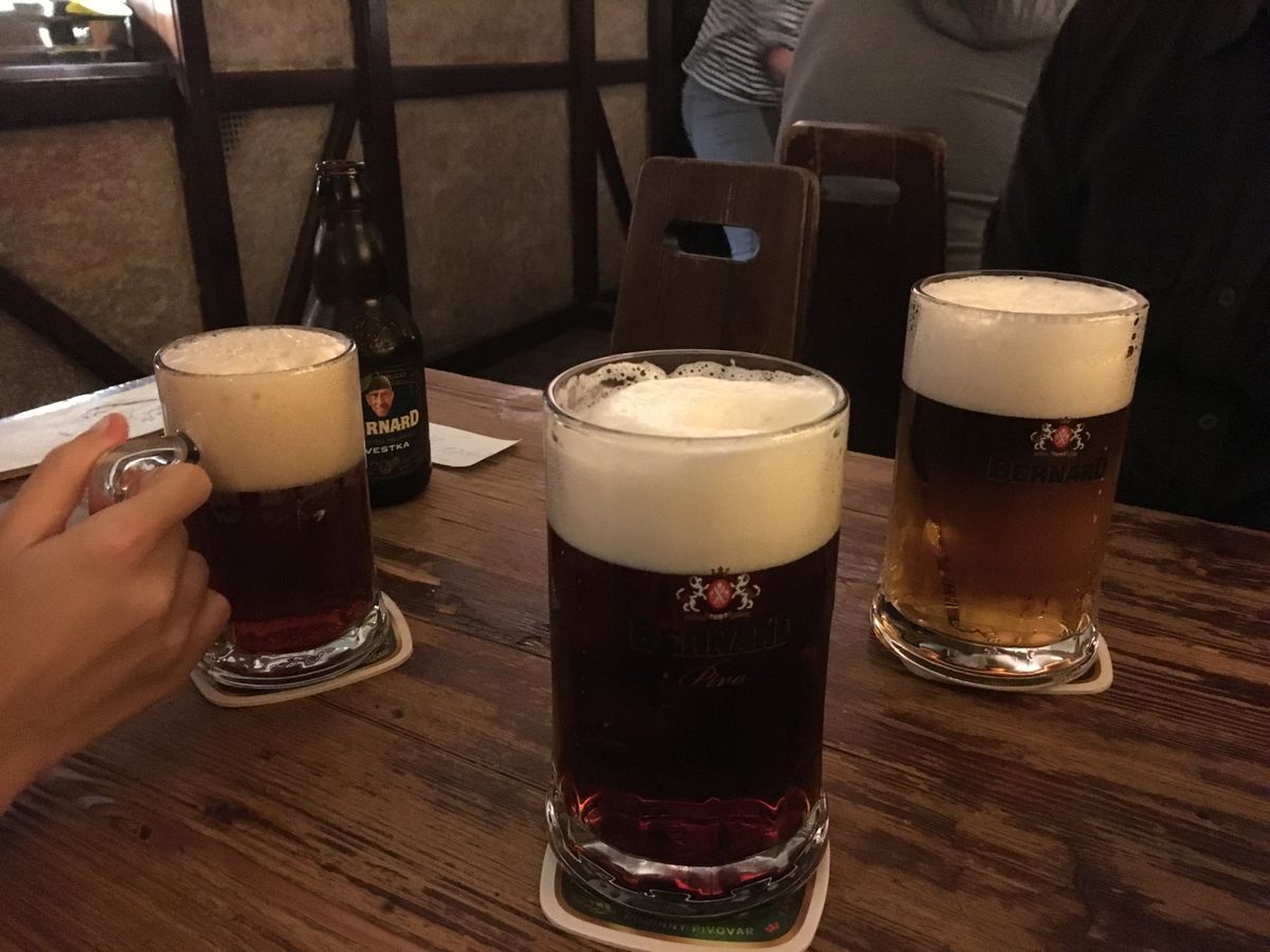 とても賢くキュートなガイドのマルカッタさんに案内して頂きました。雰囲気の違う2件をハシゴします。チェコはビールの消費量が世界一らしく、種類も豊富で値段も安い!水より安かったりします。同じビールでも麦芽の量が選べるので色々試したくなります。