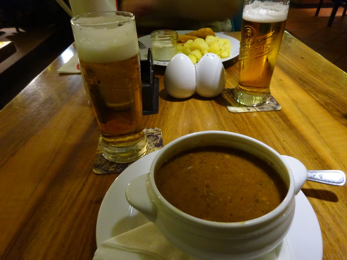 地元の方々が行く「ホスポダ」に自分たちだけで行くには店選びや料理選びも難しいものです。そんな「ホスポダ」に2件も行けて大満足でした。料理も一人1品付くのですが、ガイドさんがお勧めの料理を選んでくれ、2人でシェアすれば満腹になります。1件あたり1時間くらいですが、ビールもおかわりできますし、十分に満喫できます。ビールを満喫したあとは、丘までドライブ。地元の方が散歩する公園を通り抜けるととっても綺麗な夜景が広がっていました。最後は、ホテルまで送っていただけるので、旧市街からホテルが遠かった私たちも、安心して飲むことができました。