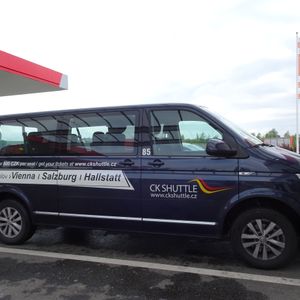 運転手を含め9人乗りのワゴンで移動します。運転席と助手席の間も席になっており、助手席とその席になると大変狭いです。チェスキークルムロフでよくその車を見かけましたが、ほとんどが満席状態なので、後部座席を利用できると良いと思います。荷物はそのまま保管してくれます。一度ガソリンスタンドでトイレ休憩があります。有料の場合もあるので、コインを用意しておくと良いです。