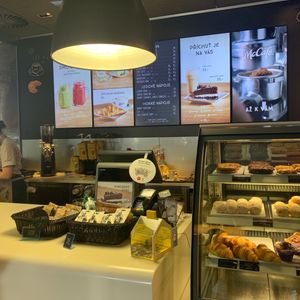チェスキーまでとチェスキーから、それぞれ一回づつトイレなどの休憩があり、ガソリンスタンドやミニスーパーのある、サービスエリアのような場所で、15分位づつだったような記憶が、、、