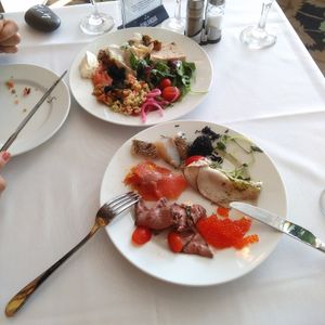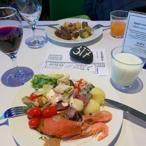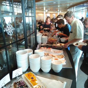 ヘルシンキ⇔タリンの帰りに利用しました。開店時間前に席を指定出来るので 混み合う船内でゆっくり過ごせます。ローストビーフ・キャビア&エビ&サーモン・サラダ・デザートとアルコールも含めた飲み食べ放題のビュッフェ、物価の高い北欧では格安です!