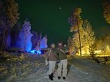 当日はガイドのDmyさんによると私たち以外の参加者が他に18名程いたが全員キャンセルになったと聞き、迎への車の出発時も雪が舞い散っており、私も姪っ子もオーロラ観測はほぼ諦めてコテージでBBQをする想い出作りの気持ちで参加しましたが、何と!美しいオーロラが波打ち何度も何度も現れてきて、感謝感激でした。しかも、参加者が私たちだけのプライベートツアーになっていたので、特別にガラスのコテージの中でBBQというサービスになり、ふたりだけだったのでガイドさんのカメラで何度も撮影してくださり、連れて行った姪っ子も喜んでくれて本当に行った甲斐があった旅行でした。ガイドさんのガールフレンドのMariaさんもお手伝いに来ていてフィンランドの飲み物のサーブやオーロラが出るたびに呼びに来てくれてとてもホスピタリティに溢れていて素敵な方々でした。聴けばウクライナから来て滞在しているとのことで戦争の影響が北極まで来てるのだな....としみじみ思いました。