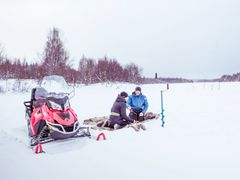 スノーモービルで行く!アイスフィッシング体験ツアー<12~4月初旬/午前/ロヴァニエミ発>