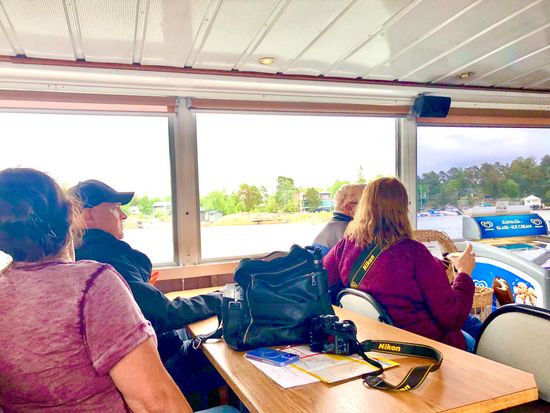 2階建てボートに乗り込み、ツアーへ出発!ルートはラーヤサロ地区をぐるっと一周。世界遺産スオメンリンナの要塞、ヘルシンキ動物園があるコルケアサーリ島、砕氷船、デゲレ運河などを見学します。