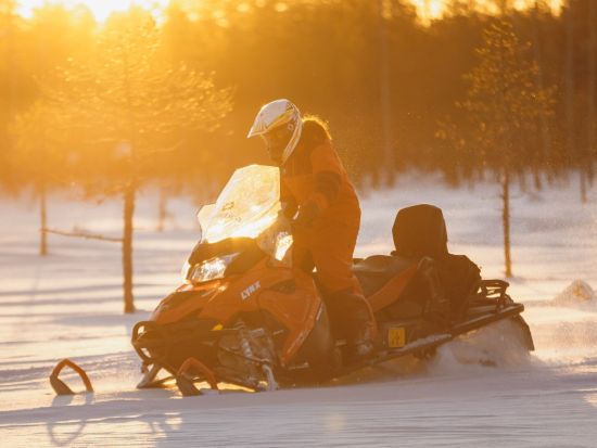 夕暮れスノーモービルツアー 雪原を疾走!焚き火BBQ&オーロラ鑑賞のチャンスも<11月~3月/英語/3時間/ロヴァニエミ発>*申込と同時に即予約確定