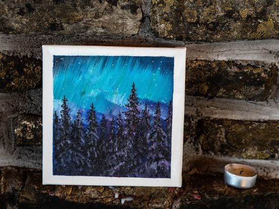 幻想的な北極の光をモチーフにした絵画をそのまま自分の作品として持ち帰れる♪