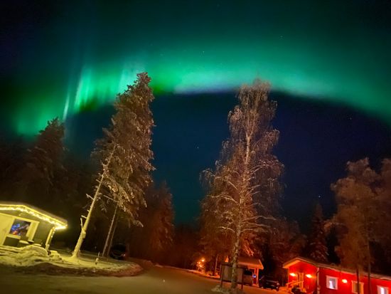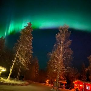 ロヴァニエミには滞在2日間の予定だったのでオーロラが鑑賞できるか心配でしたが、9時過ぎ位から徐々にオーロラが見え始め写真の様な、緑のオーロラを見ることができました!オーロラ出現までは、暖炉のある暖かいコタに入って暖かい飲み物やクッキー、ソーセージを暖炉で焼いて待ちました。リアルなオーロラに大感動しました!ありがとうございました!