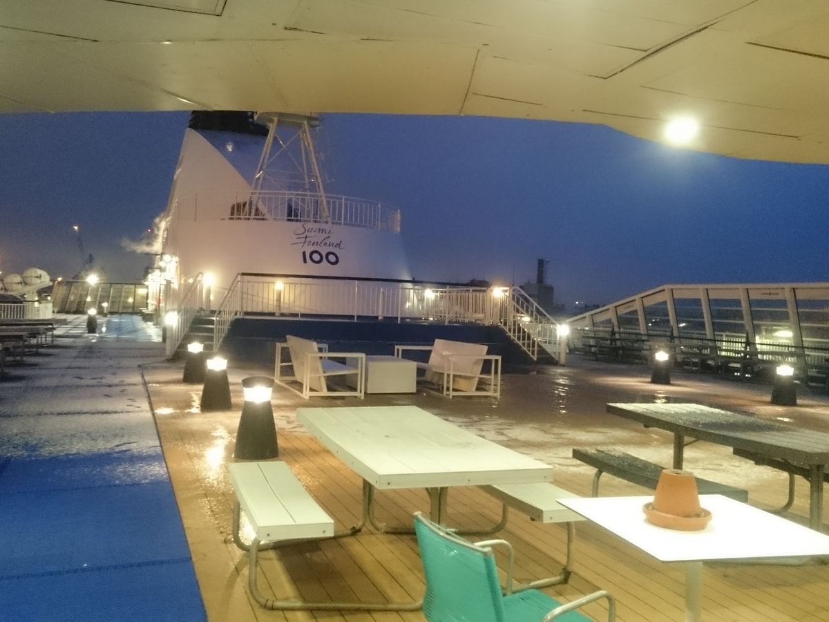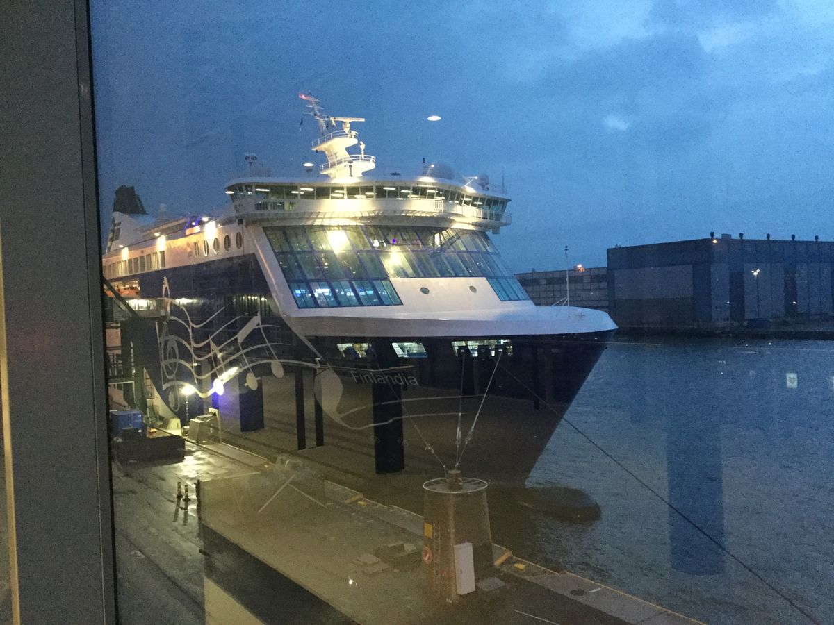 ヘルシンキの朝は暗かったですが、市内からターミナルまでは、トラムで行き早目に到着。
