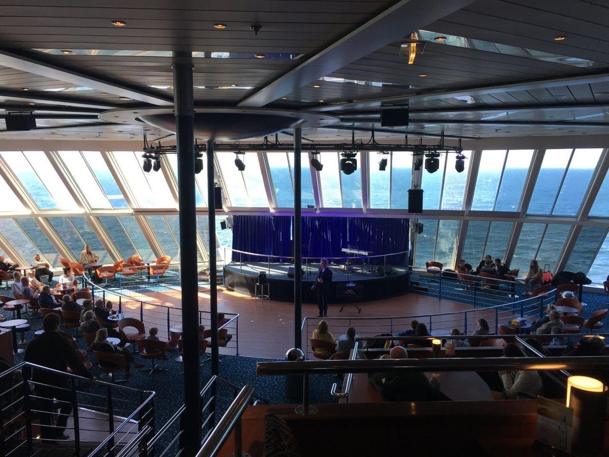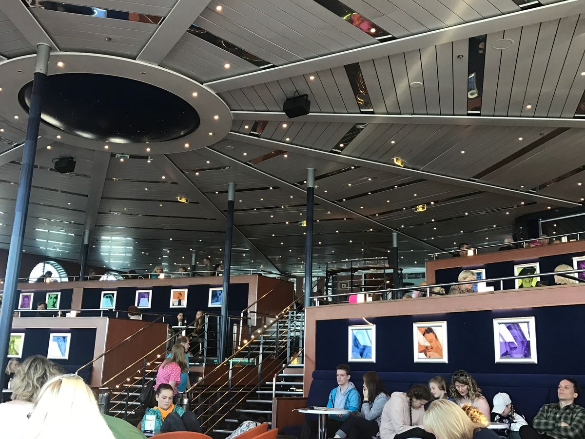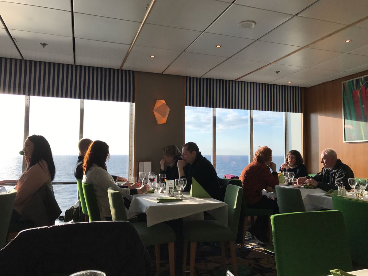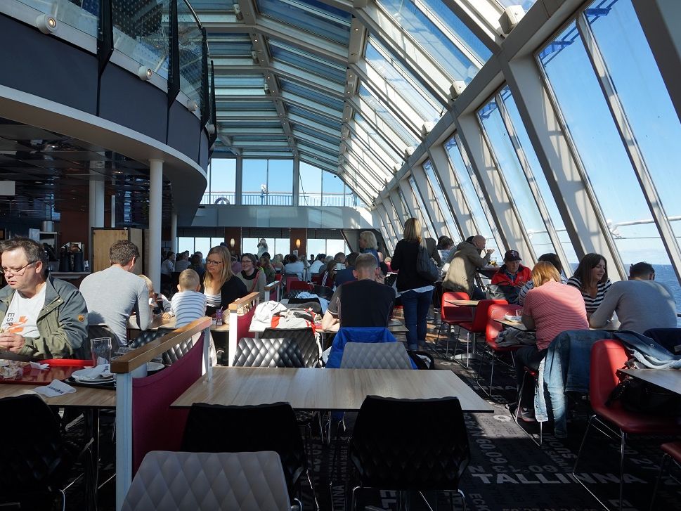 ターミナルでの下車で「終点」と「一つ手前」という2つの情報がありましたが、一つ手前で下車して迷わず行けました。7時30分の朝食を予約していたので乗船してすぐ8階のレストランに行きました。入口で席の指定の紙をもらいゆっくり朝食を食べることができました。食後はステージのそばの席で素敵なバラード曲を聞きながらタリン到着まで過ごしました。