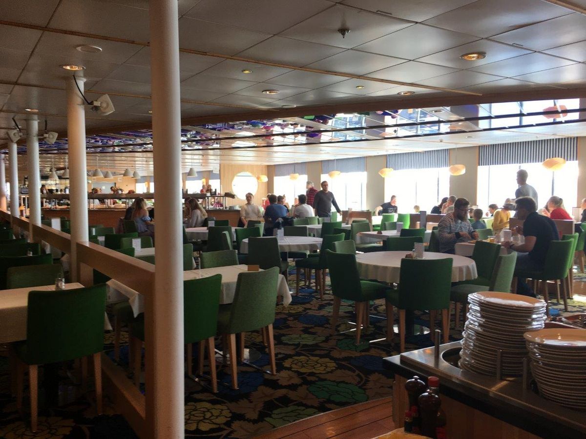 9番トラム終点で降りると目の前がターミナル2です。7時に窓口が開いて、バウチャーとパスポートを見せて乗船します。帰りの食事が予約してあったので、この時に食事のチケットも一緒に受け取りました。帰りは乗船したらすぐに8階にあるビュッフェに向かうと席が確保されていました。