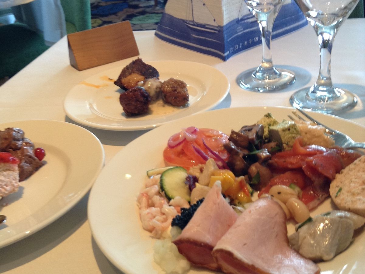 料理は、魚、肉、野菜、フルーツ、デザート飲み物などバラエティに富んでいて、お味もよかったです。ヘルシンキは外食代がとても高いのでお得感がありました。