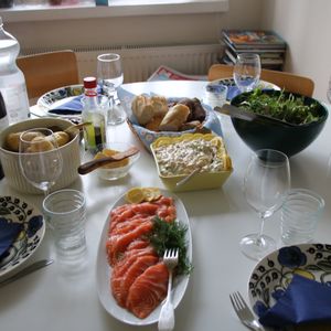 日本語のできるフィンランドのカップルのお宅で夕食をいただきました。とても親切であたたかくおもてなししていただいて、フィンランドのことや日本のことを楽しくお話しすることができました。手作りのお料理はどれも美味しく、お腹いっぱいになりました。観光地のツアーを回るだけでは体験できない、地元の人の住まいや暮らしに触れることができて大満足でした。