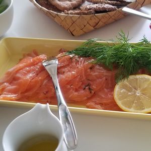まずご飯がおいしすぎる。事前に魚料理をリクエストしていたからか、前菜にはサーモン、メインには白身魚のグリル、デザートはアイスクリームと苺でした。旅行中食べた食事の中で、一番おいしかったです。ハンナさんとの会話も楽しく、両親2人と主人と4人で参加したのですが、両親もとても喜んでいました。また、ガイドのススさんは、日本に留学したことがあったのですが、私の働いていた大学に留学していたことがわかり、偶然にびっくりしました。ススさんは、ピアノと歌を披露してくれました。とてもきれいな歌声でした。最後に、ハンナさんがこのツアー会社の社長さんだということがわかり、ビックリでした。フィンランドにまた旅行することがあったら、また参加したいです。