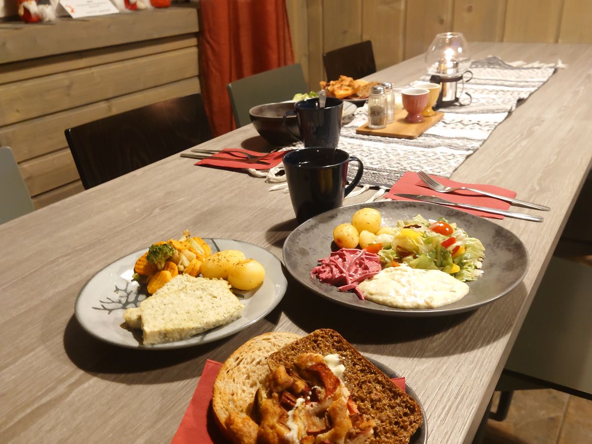 朝食と夕食(希望により昼食も)は、静かなダイニングスペースで、他の旅行者と一緒にフィンランドの伝統的な美味しい料理をいただくことができました。メインディッシュだけでなく、新鮮なサラダやデザート、コーヒーまでついているので、お腹も満たされました。