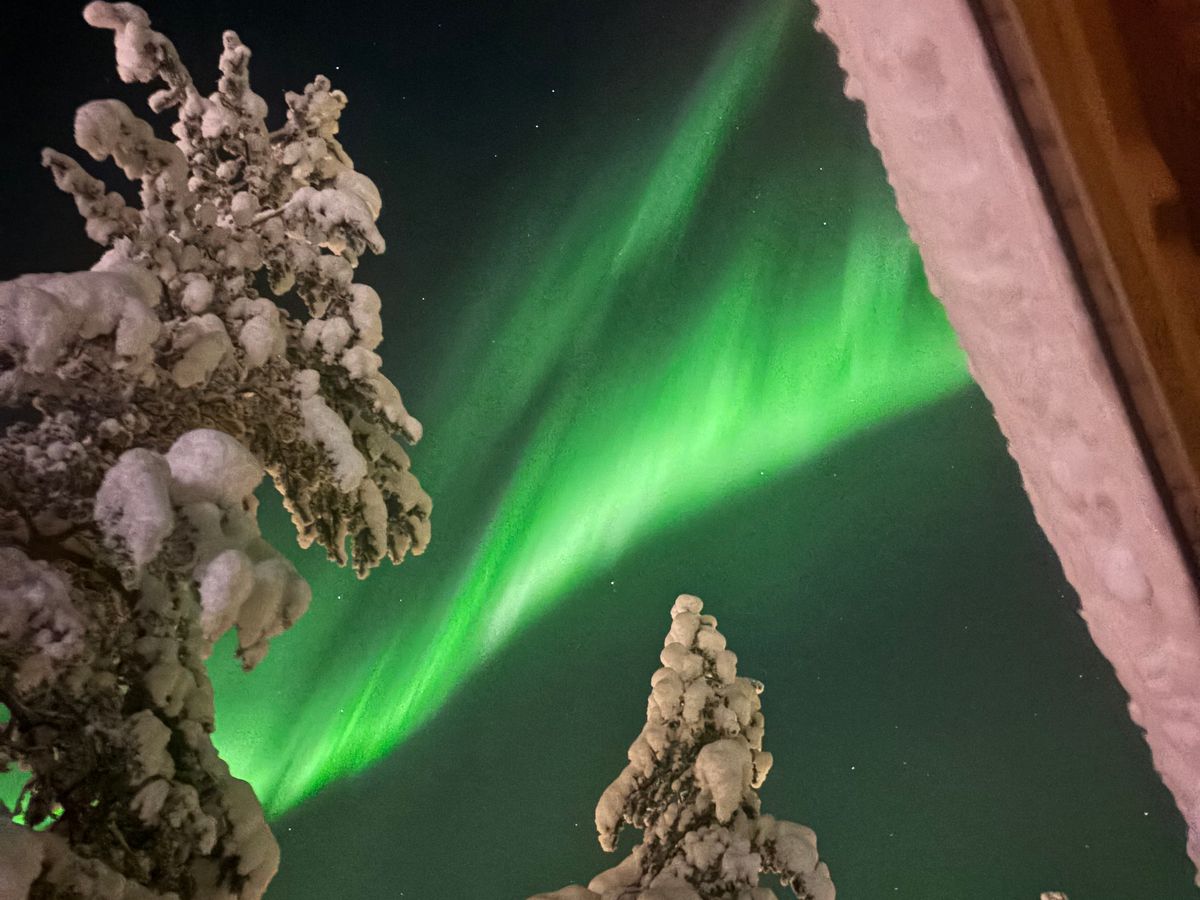 ・天候に恵まれ初日の夜、キャビンの扉を開けて上を見上げたら素晴らしいオーロラが見られた
