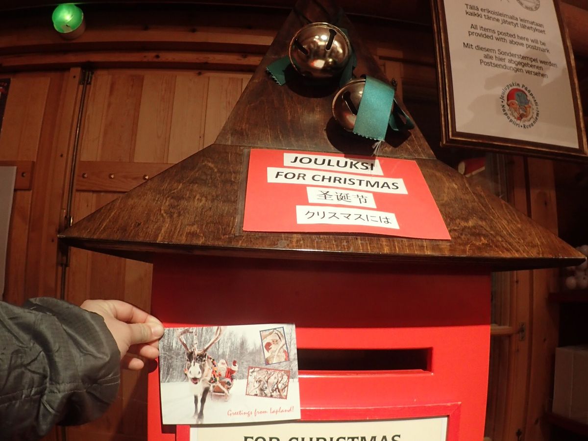 サンタクロース村の郵便局では、通常のポストと、クリスマスに届くポストの2つがあり、間違えないように投函してくださいね!ワタシは間違えてスタッフにお願いして開けてもらって投函し直しました(笑)