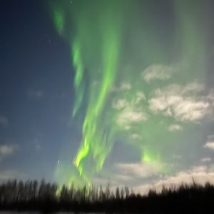 晴れてても見れない事もあるオーロラが見れました。白いオーロラですが…