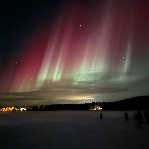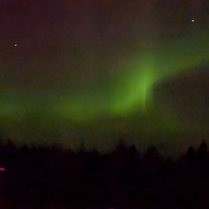 オーロラは目視ではほとんど見えず、カメラ越しには綺麗に緑や赤で光っているのが見えます。