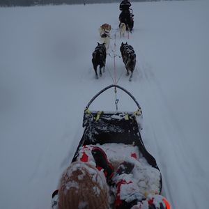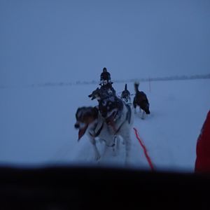 オーロラハンティング以外あまりすることがなく、湖をスキーでまわったり、ソリ遊びもしたけど、じかんがあまりオプションで犬ぞりしました。いろいろありましたが、とても楽しかったです。