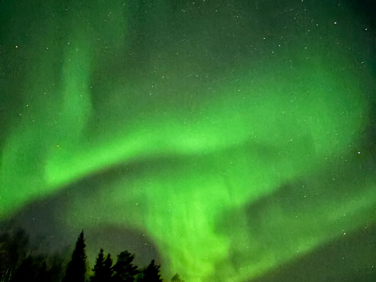 ビューポイントでは、最初はうっすらiPhoneでのみ緑がかる感じ(肉眼では雲みたいでもiPhoneのカメラで映すとオーロラか雲かが確かめられます)でしたが、徐々に肉眼でも緑が見られるようになり、最後には写真のように綺麗に大きくオーロラが現れてくれました。我々の旅程は、3日間チャンスがあったうちの最終日にこのツアーに参加してオーロラが出てくれたので、半ば諦めかけていた中でのビッグサプライズでした。