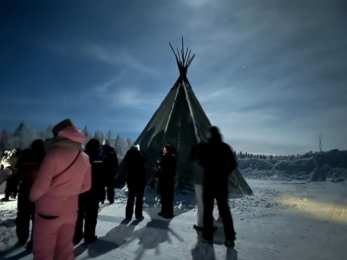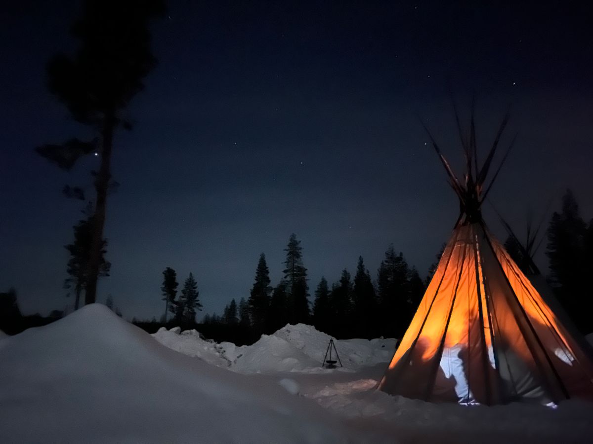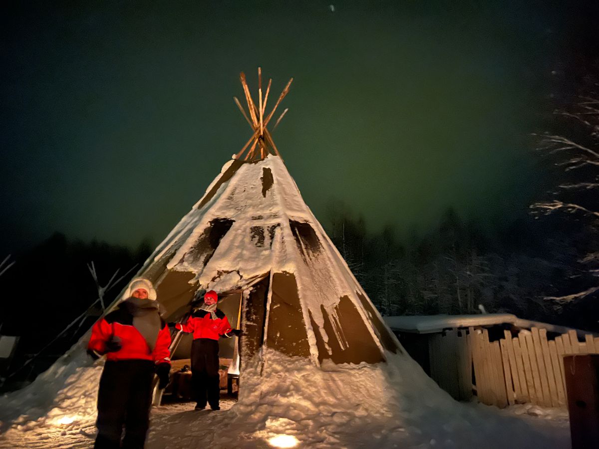 ポイントにはインデアンの家の様な三角のテントがあり中で火を焚いて暖を取りながらオーロラの発生を待つというのが基本スタイルです。