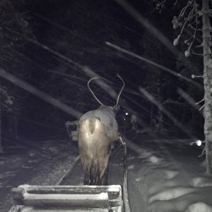 オーロラ鑑賞には時期がちょっと外れてしまっていたようで、トワイライトの中スタッフが手綱を引くトナカイのソリに乗って、粛々とゆっくり森林を抜けるツアーでした。