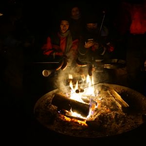 暖まりながら、その火で焼いて食べたソーセージが美味しかったです。