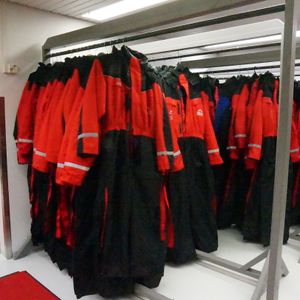 で提供していただく防寒着に着替えてました。つなぎの服のサイズは見た目でも分から