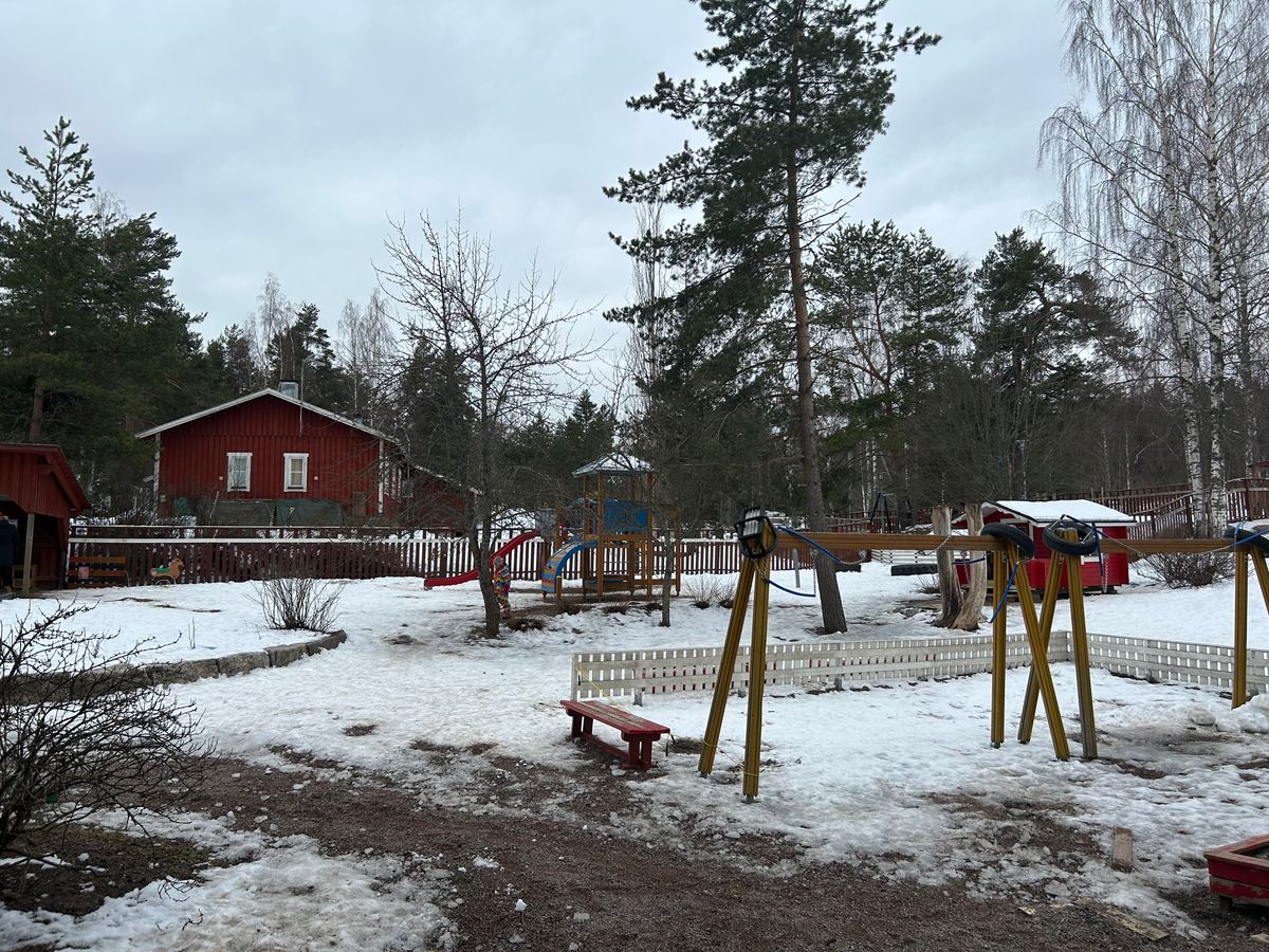 郊外の街にある幼稚園での見学でしたので、自然が豊かで子供達が寒い中でも元気に遊ぶ姿を見学することができました。最初に園長先生から幼稚園独自の取り組みをわかりやすく写真などで説明してくださったことで、その後の授業の見学も理解しやすかったです。読み聞かせを拝見したいと依頼していたため、読み聞かせの様子を見ることができました。物語に合わせて電気を暗くしていたり、絵本の中に出てくる道具(おもちゃ)を実際に手に取りながら読み進める様子が印象的でした。このようにすることで先生方は子供達の聞き取る力を把握できるそうです。フィンランド語とスウェーデン語のそれぞれを母語とする子供達が通っているため、絵本も2つの言語で普段から読み聞かせをしているそうで、どちらの言語も生活の中で自然に理解できるようになることが素敵だと思いました。