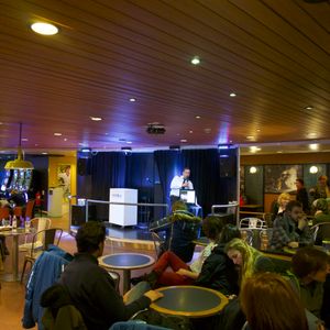 船内では、バーやカフェなどがいくつかあります。しかし、繁忙期では席が埋まることが予想されるので、なるべく早く乗船し席を確保することをおすすめします。タバコを吸うために外にもできることができますし、コンサートや催し物が行われたり、別の場所ではビンゴゲームやカラオケなども行われていて飽きずにあっという間の2時間の船旅でした。