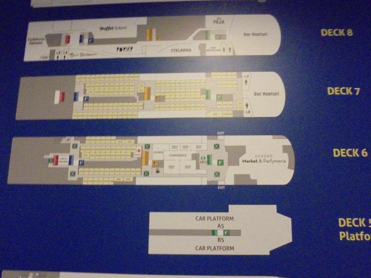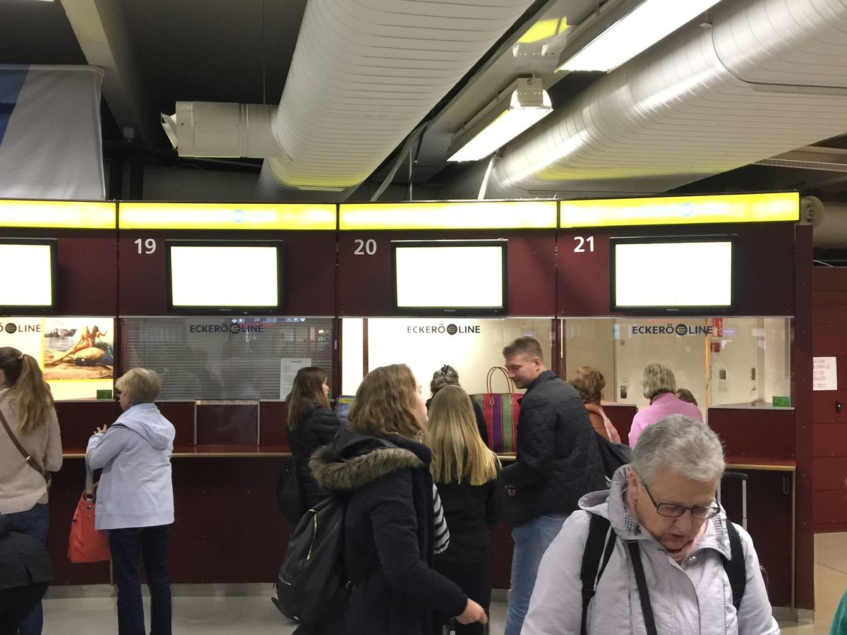 ヘルシンキのランシターミナルからの出向ですが、いくつかフェリー会社が入っていて、このチケットは『エッケロライン』の窓口でした。EU圏内なので、出入国手続きもありません。